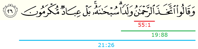| (55:3) خَلَقَ الْإِنْسَانَ | 6 | (4:28), (16:4), (21:37), (32:7), (55:14), (96:2) |