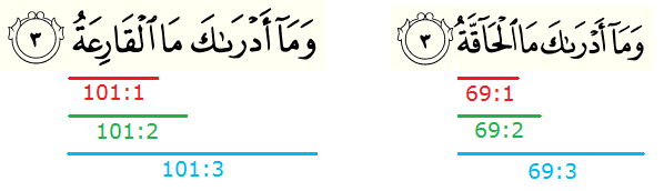 | (101:1) الْقَارِعَةُ | 3 | (69:4), (101:2), (101:3) |