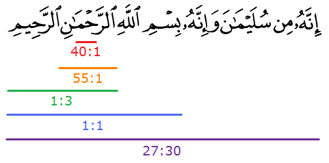 Even more surprisingly, we could have gone in the opposite direction, and discovered that there is actually a verse in the Holy Qur’ān which contains بِسْمِ اللَّهِ الرَّحْمَٰنِ الرَّحِيمِ itself as as substring within it:
